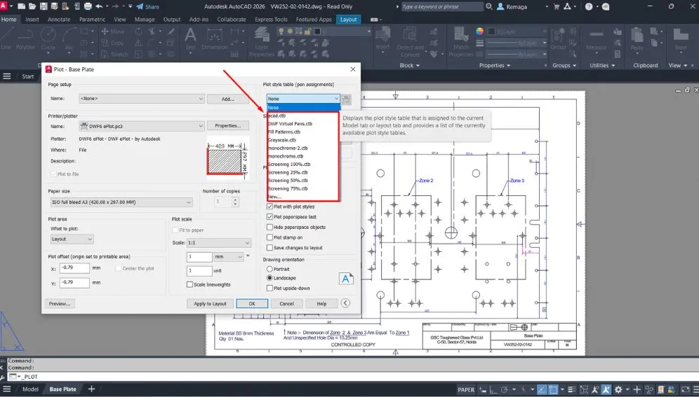 Por fim, tenha atenção ao botão “Apply to Layout”. Ele salva as alterações feitas na configuração de plotagem diretamente no layout atual. Se o seu objetivo for manter essa configuração como padrão para novas impressões, essa opção é imprescindível.
