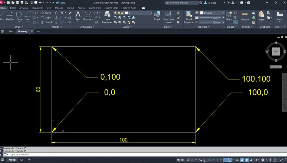 Outra prática essencial é manter atenção total à linha de comando. O AutoCAD informa claramente como está interpretando os valores digitados, e ignorar essas mensagens é uma das principais causas de erro ao trabalhar com coordenadas fixas. Esse cuidado é ainda mais importante quando o Dynamic Input está ativado.